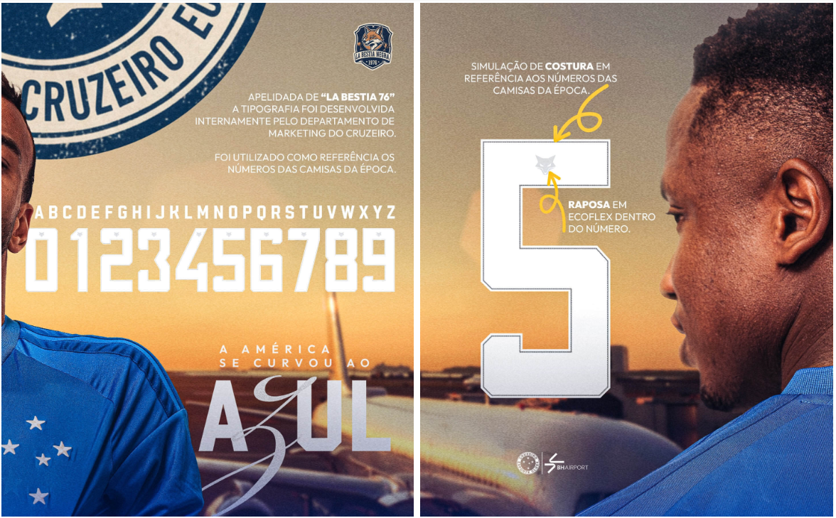 O Cruzeiro divulgou sua nova tipografia que será vista na numeração e nome dos atletas na camisa azul da coleção 2026.