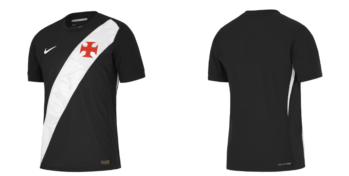 A nova camisa titular do Vasco da Gama traz o tradicional design com a base preta e a faixa diagonal branca, que traz um design ondulado, abstrata que é inspirada na história de um clube que nunca foi vencido pelo medo. Segundo a marca, o design da peça homenageia a coragem do cruzmaltino de mudar o jogo dentro e fora de campo